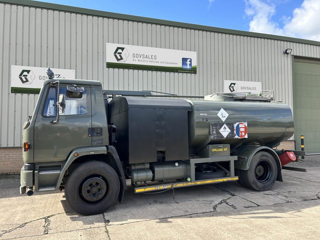 | Specification | Just come in is this nice example 9,000L AVGAS aviation fuel bowser (RARE) This vehicle has just been released from Royal Navy service Only done 71,500kms Complete with hose reel and hose boom Vehicle shown as it arrived but is available serviced and painted Please note that we recommend inspection and service of the fuel delivery system by a specialist service provider before use. CATEGORY – Airfield Support |
